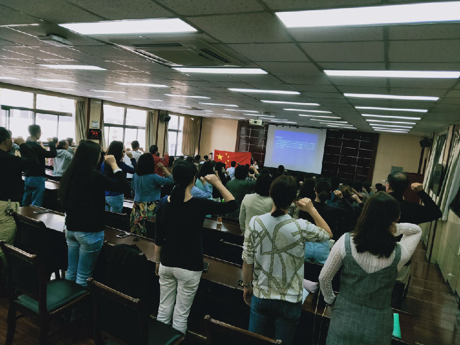 會(huì)議首先安排進(jìn)行了教師集體宣誓儀式。宣誓儀式由蔡強(qiáng)書記領(lǐng)誓,學(xué)院領(lǐng)導(dǎo)、全體教職工110余人全體起立,右手舉拳,面對(duì)國旗莊嚴(yán)誓言,鄭重承諾履行教師職責(zé),牢記人民教師職業(yè)初心與光榮使命。通過宣誓活動(dòng),全體教職工進(jìn)一步提升了服務(wù)國家、獻(xiàn)身教育的思想意識(shí),增強(qiáng)了作為一名人民教師的職業(yè)榮譽(yù)感和社會(huì)責(zé)任感。