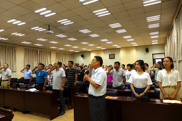大會首先舉行了隆重的教師宣誓活動。在校級教學名師周好斌教授的領誓下,全院教師面向國旗進行了莊嚴宣誓。言簡意賅、鏗鏘有力的錚錚誓詞道出了教師職業(yè)的基本操守和標準,大家滿懷深情的莊嚴宣誓表達了自己對教育事業(yè)的熱愛、忠誠和承諾。
