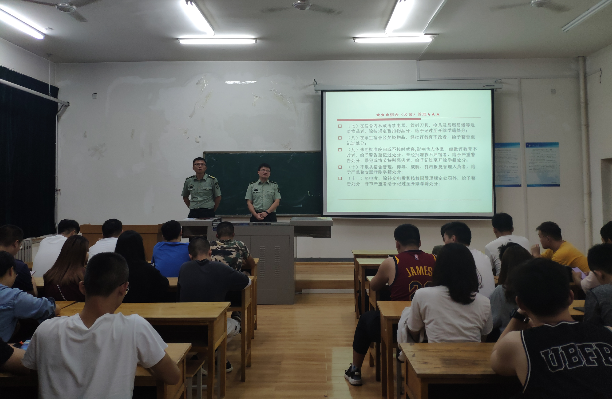 其次,周老師著重從以下幾點對參會學生干部進行了教育培訓:一、垂范遵守法律法規(guī)和校紀校規(guī),自覺維護國家安全與社會和諧;二、關(guān)注身心健康,加強體育鍛煉,健康愉悅過好大學生活;三、牢記使命、恪守職責,增強工作主動性和敏感性,深入細致關(guān)注關(guān)懷同學們的心理健康,安全隱患、異常情況要及時向輔導員老師反映;四、牢記校級校規(guī),杜絕宿舍私藏管制刀具、違禁藥品、違禁電器等情況;五、注重宿舍內(nèi)務及食品安全,從根源上做好地方疾病及傳染性疾病的預防工作;六、增強國家安全及網(wǎng)絡安全意識,自覺做到不造謠、不信謠、不傳謠,維護社會和諧穩(wěn)定。