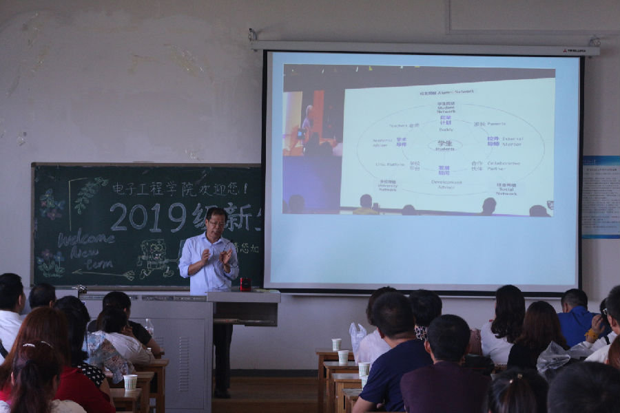 2019年9月1日,電子工程學院2019級新生家長會在C3樓419舉行。會議由電子工程學院學生管理辦公室主任周毅華主持,學院黨委書記何鋮、院長仵杰、黨委副書記畢軼慧、副院長高國旺、燕并男、2019級輔導員沈軒羽及80余名學生家長參加會議。
