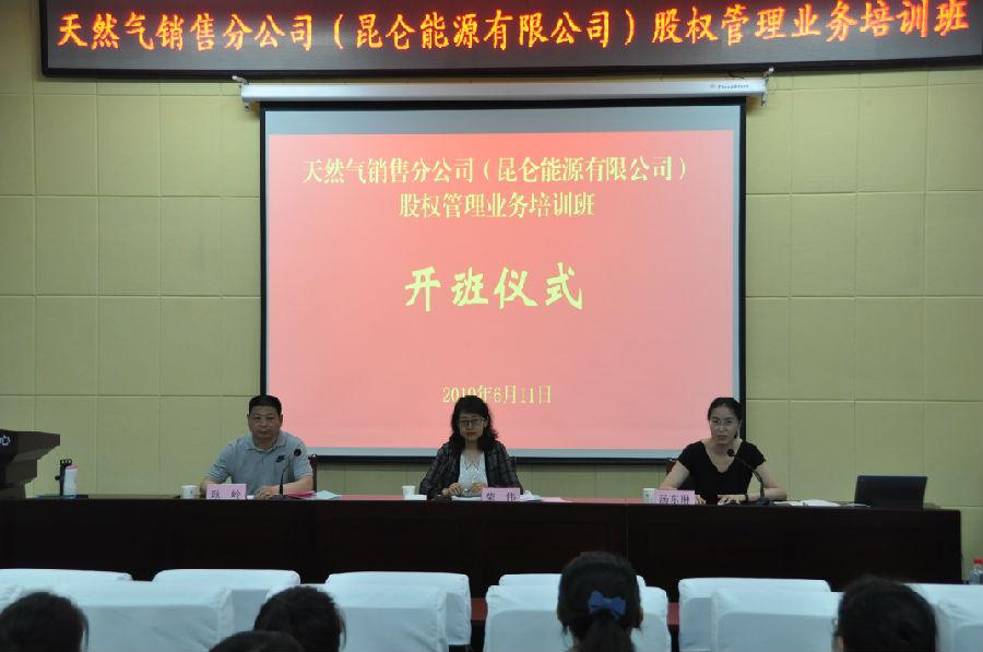 ?6月10日至14日,中國(guó)石油天然氣銷售分公司(昆侖能源有限公司)股權(quán)管理業(yè)務(wù)培訓(xùn)班在我校培訓(xùn)中心順利舉辦。來(lái)自全國(guó)各分公司從事股權(quán)管理工作的近一百五十位業(yè)務(wù)骨干參加培訓(xùn)。中國(guó)石油天然氣銷售分公司(昆侖能源有限公司)副總會(huì)計(jì)師柴偉、繼續(xù)教育學(xué)院黨總支書(shū)記耿嶺出席了開(kāi)班儀式。中國(guó)石油天然氣銷售分公司(昆侖能源有限公司)資本運(yùn)營(yíng)部總經(jīng)理湯東琳主持開(kāi)班式。
