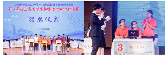 為深入學(xué)習(xí)宣傳貫徹黨的十九大精神,迎接新中國(guó)70周年華誕、慶祝國(guó)際化學(xué)元素周期表發(fā)現(xiàn)150周年,激發(fā)大學(xué)生崇尚科學(xué)的精神,營(yíng)造濃厚的學(xué)習(xí)氛圍,進(jìn)一步建設(shè)校園創(chuàng)新創(chuàng)業(yè)文化,6月13日晚,我校化學(xué)化工學(xué)院與西北工業(yè)大學(xué)、西北大學(xué)、陜西師范大學(xué)、陜西科技大學(xué)、西安理工大學(xué)、榆林學(xué)院、西安科技大學(xué)、西安建筑科技大學(xué)等8個(gè)高校代表隊(duì)?wèi)?yīng)邀在西北大學(xué)長(zhǎng)安校區(qū)參加了第八屆陜西省大學(xué)生趣味化學(xué)知識(shí)邀請(qǐng)賽。本次比賽由陜西省化學(xué)會(huì)、西北大學(xué)主辦,西北大學(xué)化學(xué)與材料科學(xué)學(xué)院承辦。