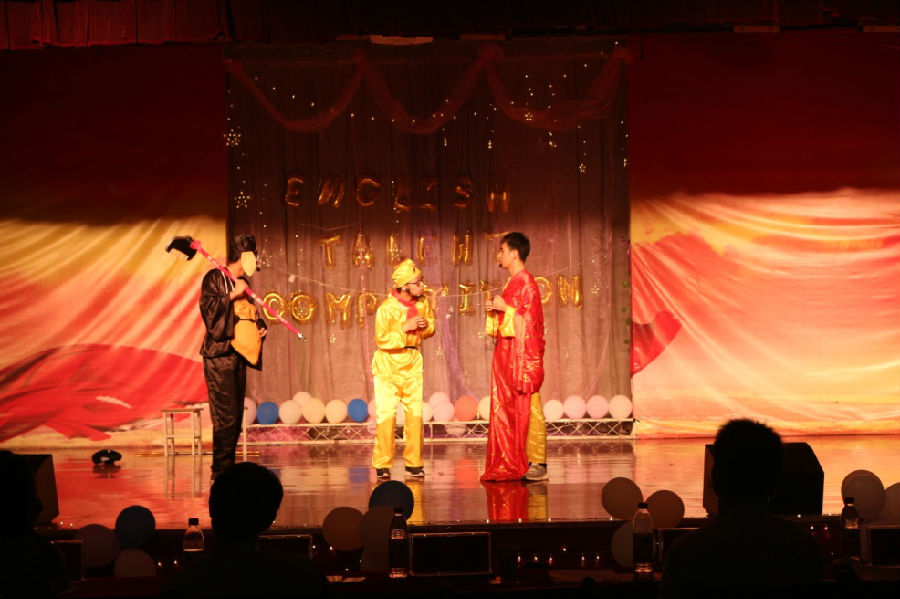此次大賽主要包括歌曲、話劇、演講三項比賽內(nèi)容。開場歌曲《Season in the sun》首先將現(xiàn)場觀眾帶入到了比賽氛圍當(dāng)中,《Diamonds》《When I was your man》《Love yourself》三首歌曲讓觀眾們對親情和生命的意義有了更多感悟和思考?!禡y heart will go on》《You raise me up》分別將泰坦尼克號浪漫故事和“9·11事件”悲劇濃縮到了短短四分鐘的歌聲中。話劇《The true meaning of college life》幫助同學(xué)們理解什么是大學(xué)生活的真正意義,《西游記之白骨精與女兒國》和《白娘子傳奇》讓我們看到同學(xué)們用英語對經(jīng)典的再演繹。演講《Are you a leaf, branch or root》告訴我們?nèi)绾握{(diào)整自己的處事心態(tài),《The groundless brliefs》幫助我們探究自我盲從和迷信從何而生,《Undergraduate students dating is a good idea》讓我們感受到不一樣的大學(xué)生活。
