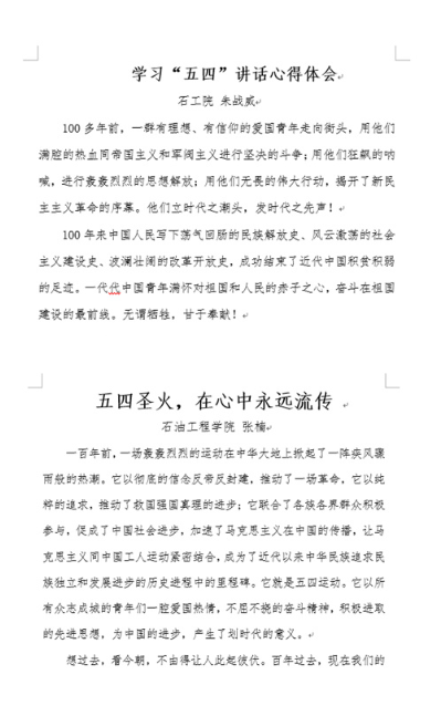 為紀(jì)念五四運(yùn)動100周年,深入學(xué)習(xí)貫徹習(xí)近平總書記在紀(jì)念五四運(yùn)動100周年大會上的重要講話精神,引導(dǎo)高校青年大學(xué)生加深對五四運(yùn)動歷史意義和時(shí)代價(jià)值的認(rèn)識,石油工程學(xué)院于5月份開展學(xué)習(xí)習(xí)近平總書記在紀(jì)念五四運(yùn)動100周年大會上講話精神系列活動。