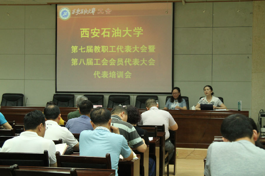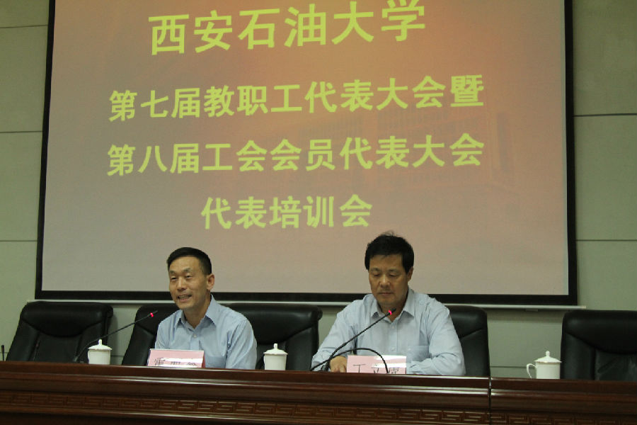 5月24日上午,西安石油大學(xué)第七屆教職工代表大會暨第八屆工會會員代表大會代表培訓(xùn)班在雁塔校區(qū)第三會議室舉行。陜西省總工會黨組成員、副主席丁立虎同志為培訓(xùn)班成員作了《圍繞中心 服務(wù)大局 凝心聚力建設(shè)高水平大學(xué) 》的專題講座。校黨委副書記雷西合、“雙代會”各代表團負責(zé)人、各部門工會主席及校工會全體人員共80余人參加了培訓(xùn)。
