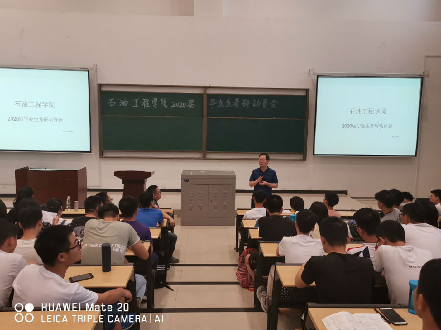 為進一步提高石油工程學院2020屆畢業(yè)生考研積極性,石油工程學院于5月23日晚上19:00,在機械材料樓115教室召開2020屆畢業(yè)生第二輪考研動員會,石油工程學院黨委副書記張建高,副院長劉志坤,學生管理辦公室主任朱戰(zhàn)威受邀參加本次動員會。本次動員會由2016級輔導員嚴維博老師主持,2016級190余名明確考研方向同學參加本次會議。