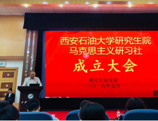 在中華人民共和國成立70周年、紀念五四運動100周年之際,各大高校都掀起學習馬克思主義思想的熱潮。西安石油大學研究生院也不負時代重任,借馬克思主義研習社吹響邁向新時代的號角,踐行社會主義核心價值觀,堅定擔當民族復興大任的理想信念,勇?lián)鷼v史使命。