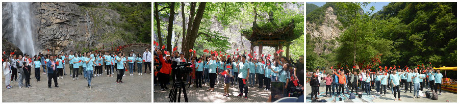 崇山峻嶺,飛瀑入潭,峰巒疊嶂、溝谷連綿。當(dāng)天上午,人文學(xué)院部分領(lǐng)導(dǎo)、教師、學(xué)生黨員和入黨積極分子來到風(fēng)景優(yōu)美的太平國家森林公園,與景區(qū)的工作人員、游客一起,以飽滿的熱情投入到本次活動中。在景區(qū)內(nèi)石船子、彩虹瀑布等景點,《我和我的祖國》、《歌唱祖國》兩首歌曲在同學(xué)們的演繹下,嘹亮的歌聲回蕩在山林綠水間,激揚的旋律、鏗鏘的唱詞吸引周圍游客紛紛駐足。在現(xiàn)場越來越熱烈的氣氛中,大家情緒高漲,跟著音樂哼唱、紛紛揮舞著小紅旗,五星紅旗交相輝映,匯成一片紅色海洋,令人激情澎湃。