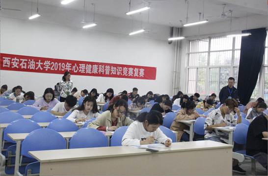 為進(jìn)一步推進(jìn)我校心理育人工作深入開展,引導(dǎo)廣大同學(xué)積極關(guān)注自身和他人的心理健康,學(xué)習(xí)和傳播心理健康知識,提升學(xué)生心理素質(zhì),促進(jìn)學(xué)生全面發(fā)展,4月23日晚,西安石油大學(xué)2019年心理健康科普知識競賽復(fù)賽在B115舉行。心理健康科普知識競賽分初賽、復(fù)賽和決賽三階段進(jìn)行。初賽活動由各院(系)安排,組織全體學(xué)生學(xué)習(xí)心理健康知識,并進(jìn)行考核,選拔出三名優(yōu)勝選手,組成院(系)代表隊(duì)參加學(xué)校復(fù)賽。