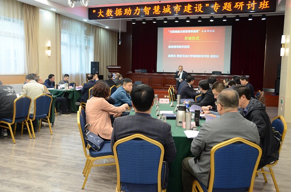 3月18日至28日,我校培訓中心成功舉辦了 2019年春季陜西省干部教育培訓“大數據助力智慧城市建設”專題研討班。開班儀式上,繼續(xù)教育學院吳民生副院長對參加本次培訓的來自省直機關單位、省屬企業(yè)、高校及地市政府相關部門的39位處級領導干部學員表示熱烈歡迎,并簡要介紹了西安石油大學基地的發(fā)展歷程和我基地培訓工作開展情況及取得的成績。