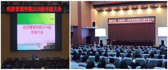 新學期,新氣象,經(jīng)濟管理學院于3月13日12點30分別在鄠邑校區(qū)弘石報告廳和就業(yè)指導中心118召開2018級年級大會。會議分別由2018級學生輔導員尹曉嬌、陸曉寒老師主持,2018級全體同學參加了會議。