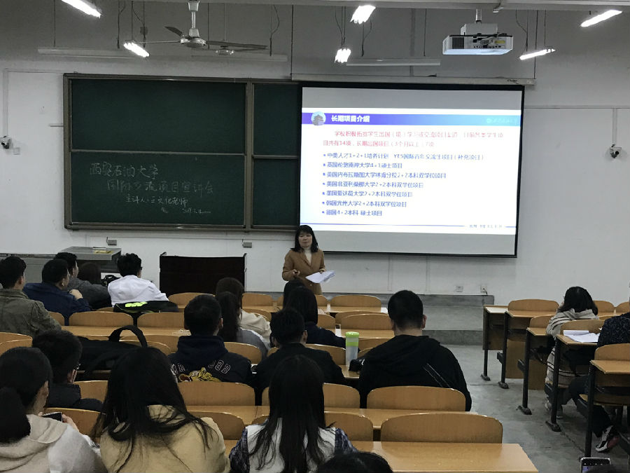 3月11日晚19:00,國際交流與合作處在鄠邑校區(qū)B114教室舉辦留學(xué)項(xiàng)目宣講會(huì),王文化副處長主講。