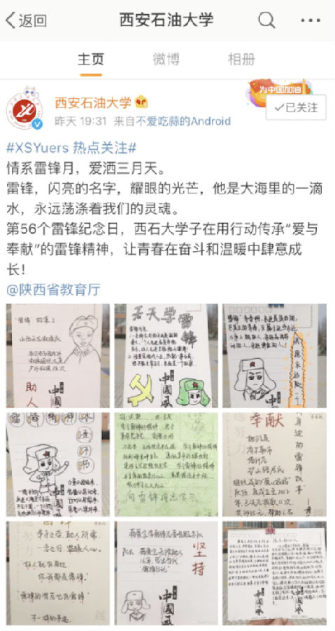 活動(dòng)伊始,學(xué)生干部們?cè)诶鲜程瞄T(mén)口布置展示了雷鋒肖像和雷鋒生平故事,其積極姿態(tài)吸引了眾多同學(xué)觀看參與。學(xué)生干部們?yōu)橥瑢W(xué)們?cè)敿?xì)講解了雷鋒生平事跡和雷鋒精神。隨后,部門(mén)成員們開(kāi)始了“校園清潔活動(dòng)”,大家分成了若干小組分散到學(xué)校的各個(gè)角落進(jìn)行清潔活動(dòng)。在活動(dòng)成員們的渲染下,許多同學(xué)也投入到清潔行列。雷鋒精神時(shí)刻被提倡著,我們應(yīng)該讓雷鋒精神成為一種生活中的一部分,從小事做起,從身邊做起,使更多需要幫助的人得到幫助,讓我們的校園變得更美好。