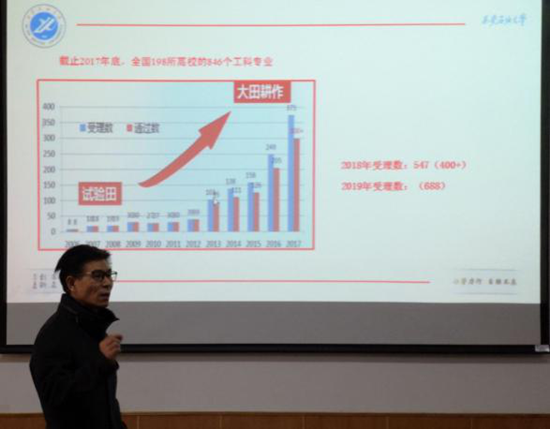 專業(yè)認(rèn)證(評(píng)估),在國(guó)家層面上,是未來評(píng)價(jià)專業(yè)質(zhì)量的重要標(biāo)準(zhǔn),是高等教育內(nèi)涵發(fā)展的重要內(nèi)容;省級(jí)層面上,推動(dòng)專業(yè)認(rèn)證(評(píng)估)是深化高校供給側(cè)結(jié)構(gòu)性改革的重要抓手,是“四個(gè)一流”建設(shè)的重要內(nèi)容;學(xué)校層面上,開展專業(yè)認(rèn)證(評(píng)估)對(duì)于提高學(xué)校核心競(jìng)爭(zhēng)力,培養(yǎng)一流人才,建設(shè)一流本科,爭(zhēng)創(chuàng)一流專業(yè)具有重要的現(xiàn)實(shí)意義。為了進(jìn)一步了解和掌握專業(yè)認(rèn)證(評(píng)估)的相關(guān)理念、方法,經(jīng)濟(jì)管理學(xué)院特意邀請(qǐng)校高教評(píng)估中心副主任時(shí)保宏老師,進(jìn)行了精彩講座。推進(jìn)會(huì)由教學(xué)副院長(zhǎng)吳勛主持,各專業(yè)負(fù)責(zé)人、系主任、教學(xué)辦工作人員參加。