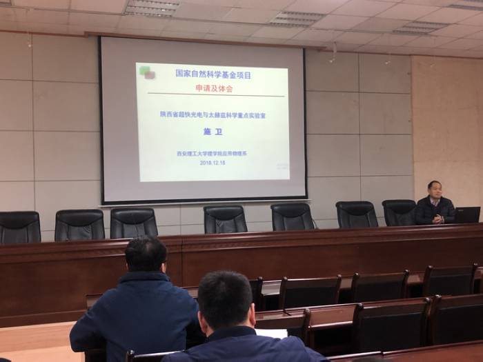 2018年12月18日。理學院邀請西安理工大學施衛(wèi)教授在雁塔校區(qū)會議中心第三會議室進行了關于國家自然科學基金申請及體會的報告會。傅海威院長主持會議,理學院博士及副高以上教師50余人參加了報告會。