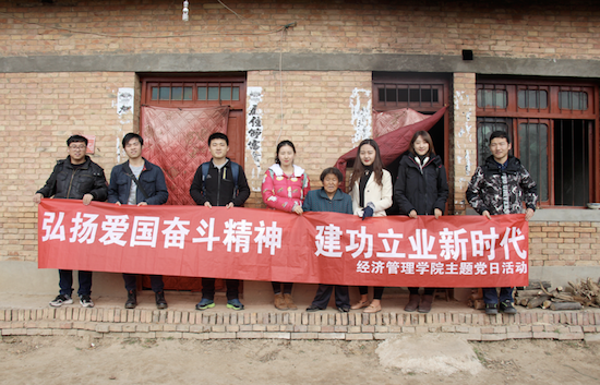 為認(rèn)真貫徹落實(shí)習(xí)近平總書記對弘揚(yáng)愛國奮斗精神作出的一系列重要指示和西石大黨組〔2018〕77號文件精神,按照學(xué)院具體工作部署,11月13日,經(jīng)濟(jì)管理學(xué)院“弘揚(yáng)愛國奮斗精神、建功立業(yè)新時(shí)代”主題黨日活動(dòng)在學(xué)校對口幫扶的永壽縣永平鎮(zhèn)堅(jiān)固村開展。經(jīng)濟(jì)管理學(xué)院黨委副書記趙海濤、學(xué)院全體學(xué)工干部、學(xué)生黨員代表近20人參加。