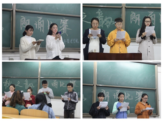 2018年10月17日下午6點20分,經(jīng)濟管理學院在鄠邑校區(qū)B區(qū)221教室舉辦了“弘揚愛國奮斗精神、建功立業(yè)新時代”第十二屆“秋之韻”詩文配樂朗誦比賽。來自2018級各班的選手及觀眾近200人參加了此次活動。