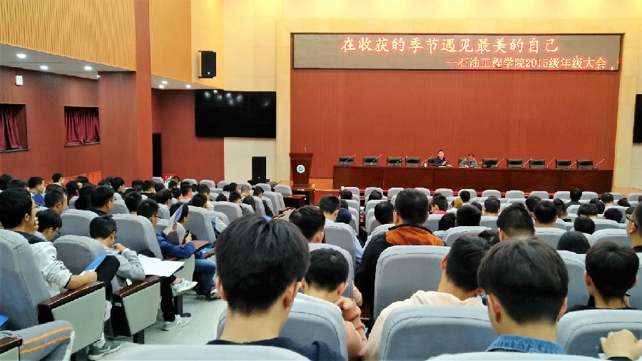9月25日晚7點,石油工程學院2015級在新校區(qū)弘石報告廳召開了以“在收獲的季節(jié)遇見最美的自己”為主題的年級大會。參加本次會議的有石油工程學院學生管理辦公室主任孫會珠老師,2015級輔導員朱戰(zhàn)威老師以及2015級全體同學。
