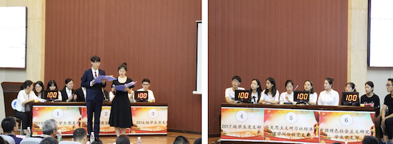 本次比賽由2016級(jí)學(xué)生干部李鑫浩、陳悅同志主持,共分為必答題、搶答題和風(fēng)險(xiǎn)題三個(gè)環(huán)節(jié)。比賽中,六組由各黨支部選拔出的優(yōu)秀選手在答題環(huán)節(jié)展現(xiàn)出非凡的實(shí)力,尤其在搶答環(huán)節(jié),更是賽出了大學(xué)生黨員應(yīng)有的風(fēng)采。最終2015級(jí)商管學(xué)生黨支部獲得本次比賽一等獎(jiǎng),并由閆大維書記為他們頒獎(jiǎng)。