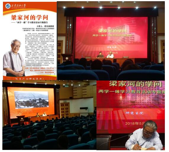 ——舉辦報(bào)告。5月4日下午,研究生院黨委邀請(qǐng)省作協(xié)主席團(tuán)顧問曹谷溪先生在雁塔校區(qū)為研究生院師生作了題為《梁家河的學(xué)問》的專題報(bào)告。研究生院黨委領(lǐng)導(dǎo)、全體學(xué)工干部和研究生代表300余人聆聽了報(bào)告。報(bào)告會(huì)上,曹老通過回顧習(xí)近平總書記在陜北黃土高原、在梁家河大隊(duì)創(chuàng)辦沼氣的知青歲月,闡述了習(xí)近平總書記青年時(shí)代矢志不渝的理想追求、愛國(guó)為民的家國(guó)情懷、勤奮好學(xué)的進(jìn)取精神、求真務(wù)實(shí)的良好作風(fēng)和吃苦耐勞的優(yōu)秀品質(zhì)。本次報(bào)告會(huì)旨在讓研究生牢記習(xí)近平總書記在北京大學(xué)師生座談會(huì)上愛國(guó)、勵(lì)志、求真、力行的諄諄囑托,反響熱烈。
