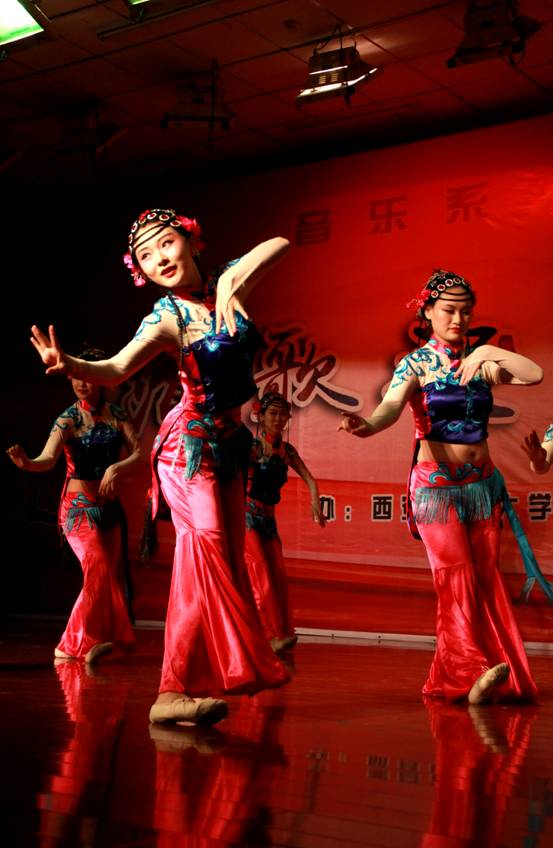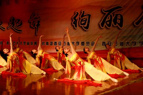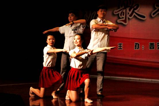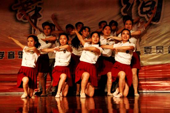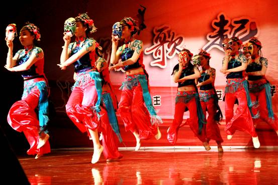 本場晚會由我系宋淼老師總策劃,全程指導(dǎo)學(xué)生排演節(jié)目并制定演出方案。教師與學(xué)生攜手演繹,李陽、田立老師演唱歌曲《我愛你中國》為本場晚會拉開了序幕,校工會教師舞蹈隊的《C哩C哩、茉莉花》將現(xiàn)代及古典舞蹈相結(jié)合,展現(xiàn)了我校熱愛舞蹈的教工風(fēng)采;現(xiàn)代舞蹈、薩克斯重奏《雨中曲》、影視歌曲聯(lián)唱等曲目贏得了觀眾的陣陣掌聲;周偉老師指導(dǎo)的音樂系合唱團(tuán)演唱的大合唱《長恨歌—仙樂風(fēng)飄處處聞》、《十送紅軍》大氣磅礴,;民樂合奏、女生小合唱、傣族舞和獨唱更是體現(xiàn)了我系學(xué)生專業(yè)水準(zhǔn);由我系舞蹈教師何云老師自編自導(dǎo)的舞蹈《京劇臉譜》,舞蹈動作大氣到位、服裝道具美輪美奐、編舞專業(yè)化程度高,讓人耳目一新,震撼全場;結(jié)尾舞《輝煌明天》將晚會推向了高潮,晚會在全場同學(xué)的掌聲中圓滿落下帷幕。
