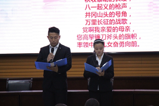 伴隨著詩(shī)朗誦《黨的贊歌》,本次班會(huì)拉開(kāi)了序幕。