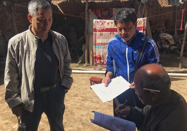 現(xiàn)場查看幫扶對象雞舍建設(shè)情況