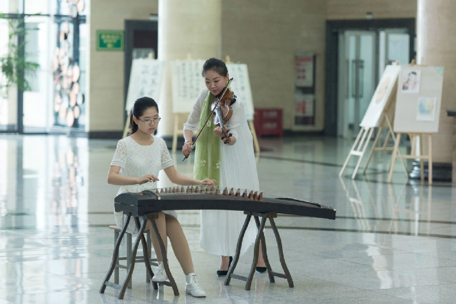 本次活動由鄠邑校區(qū)圖書館主辦,校學(xué)生會學(xué)習(xí)部協(xié)辦,共有100多名師生共同參與?;顒有问綖榻陙眍H受年輕人歡迎的“快閃”,有獨舞,音樂合奏《青花瓷》,詩朗誦《水調(diào)歌頭》《面朝大海春暖花開》《關(guān)雎》《沁園春.長沙》環(huán)節(jié)組成。我們用優(yōu)美的舞姿,悠揚的音樂及震撼的朗誦喚起大家對閱讀的興趣。同時讓師生們在愉悅的環(huán)境中體會閱讀的美好。