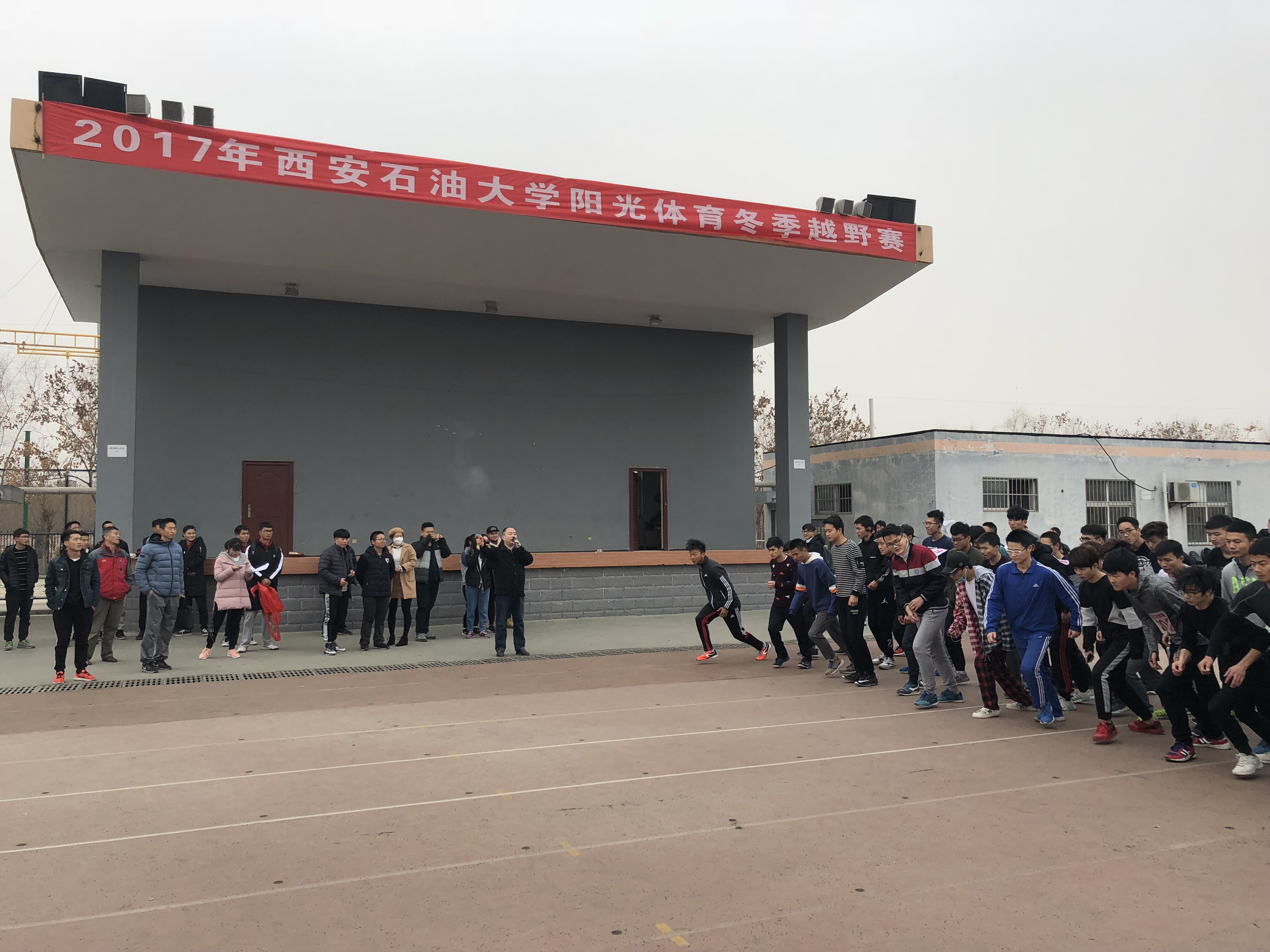 為積極響應(yīng)共青團(tuán)中央、國(guó)家教育部、國(guó)家體育總局、全國(guó)學(xué)聯(lián)關(guān)于開展“走下網(wǎng)絡(luò)、走出宿舍、走向操場(chǎng)”主題活動(dòng)的號(hào)召,大力推動(dòng)學(xué)?!瓣?yáng)光體育·冬季長(zhǎng)跑”健身活動(dòng),提升學(xué)生身體素質(zhì),豐富校園體育文化生活,2017年12月29日下午,西安石油大學(xué)“陽(yáng)光體育”大學(xué)生冬季越野賽在我校鄠邑校區(qū)成功舉行,校體育運(yùn)動(dòng)委員會(huì)主任、副校長(zhǎng)陳軍斌為比賽鳴槍開賽。