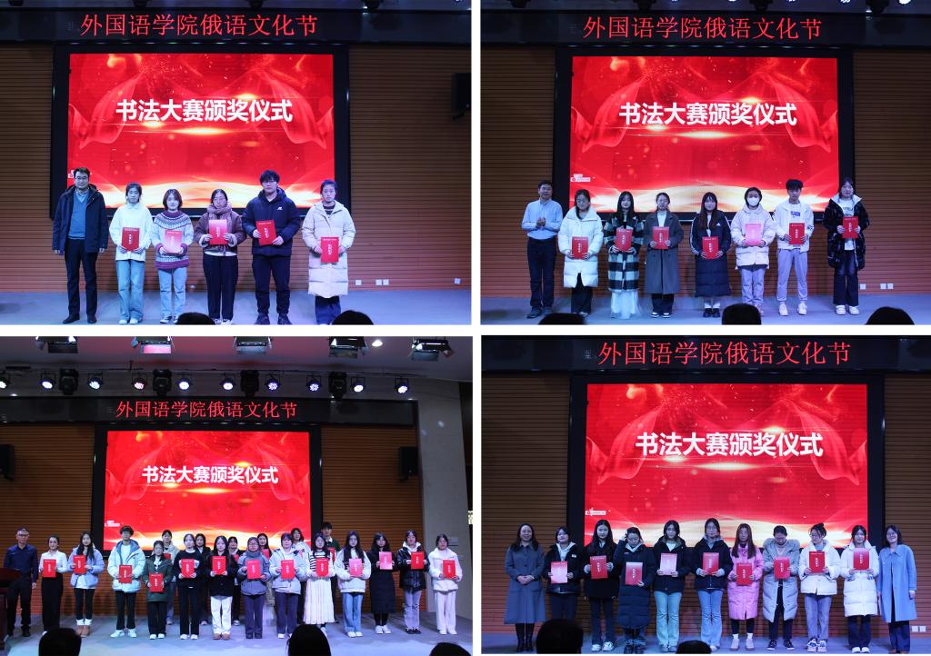 為進(jìn)一步展示外語(yǔ)及其蘊(yùn)含的深邃文化,引導(dǎo)學(xué)生體會(huì)外語(yǔ)的形美和意美,激發(fā)學(xué)習(xí)興趣,營(yíng)造良好氛圍。為期一個(gè)月的俄語(yǔ)文化節(jié)設(shè)置了外語(yǔ)書(shū)法大賽、海報(bào)設(shè)計(jì)大賽等,并進(jìn)行了隆重表彰,與會(huì)領(lǐng)導(dǎo)嘉賓為獲獎(jiǎng)學(xué)生頒獎(jiǎng)。