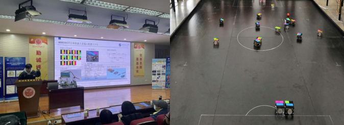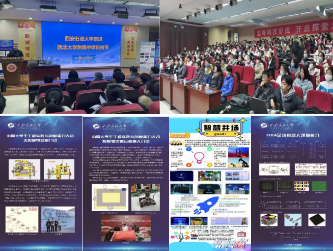 學(xué)校高度重視中學(xué)科技節(jié)展演活動,精心組織參展作品,選派展演了2023年中國大學(xué)生工程實踐與創(chuàng)新能力大賽國賽銅獎作品《太陽能電動車》和《智能物流搬運機(jī)器人》、第十九屆“博創(chuàng)杯”嵌入式人工智能設(shè)計大賽全國總決賽特等獎作品《智慧井場》、2023中國機(jī)器人大賽FIRA小型組半自主賽項冠軍作品《半自主足球機(jī)器人軟件系統(tǒng)》等4項科技作品,分兩場次為300余名中學(xué)生做宣講演示。