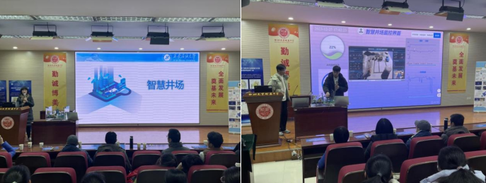 之后方昕老師帶領(lǐng)同學(xué)們走進(jìn)智慧井場,介紹了油田鉆井作業(yè)中存在的安全事故風(fēng)險,科普了基于物聯(lián)網(wǎng)技術(shù)的智能油田管理系統(tǒng)模塊與功能,生動闡述了利用物聯(lián)網(wǎng)、人工智能、大數(shù)據(jù)技術(shù)為井場安全作業(yè)提供的智能解決方案,提高作業(yè)安全性和可靠性,提升井場運營效率,特別強(qiáng)調(diào)了未來智慧井場、智慧油田建設(shè)需要多學(xué)科交叉復(fù)合型人才,鼓勵同學(xué)們樹立科技報國信念,用青春之力端牢能源飯碗。參展同學(xué)現(xiàn)場演示了井場工作流程,并對突發(fā)狀況的應(yīng)急處置進(jìn)行了精彩講述。臺下的同學(xué)們站立圍觀、目不轉(zhuǎn)睛,當(dāng)井場溫度超標(biāo)時,系統(tǒng)發(fā)出的預(yù)警聲博得同學(xué)們地陣陣喝彩。