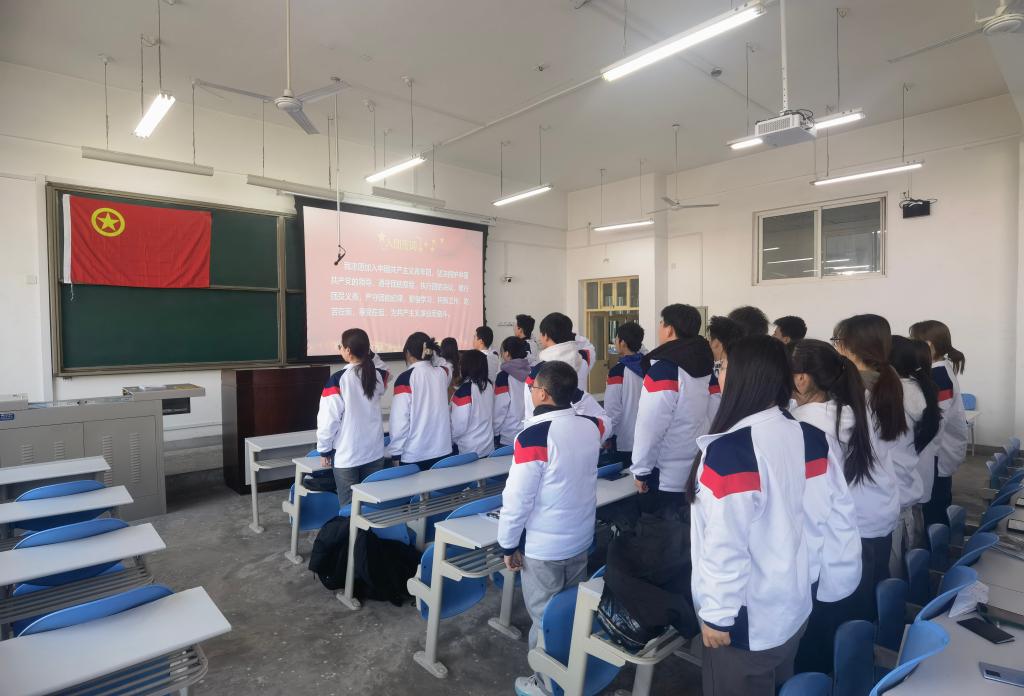 會(huì)議最后,全體參會(huì)人員在盧筱佳的帶領(lǐng)下重溫入團(tuán)誓詞。