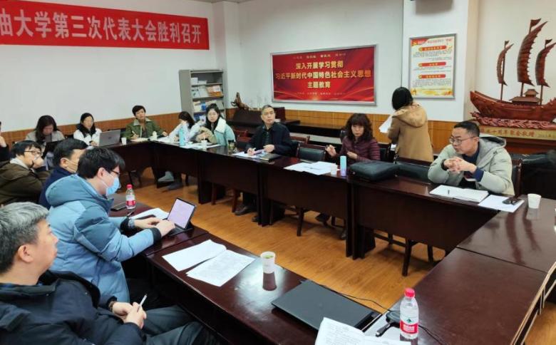 為持續(xù)深入學(xué)習(xí)貫徹習(xí)近平新時(shí)代中國(guó)特色社會(huì)主義思想和黨的二十大精神,進(jìn)一步落實(shí)中國(guó)共產(chǎn)黨西安石油大學(xué)第三次代表大會(huì)要求,深化本科教育教學(xué)改革,推動(dòng)學(xué)校本科教育高質(zhì)量發(fā)展,全力做好本科教育教學(xué)審核評(píng)估評(píng)建工作,根據(jù)學(xué)?!蛾P(guān)于在全校開(kāi)展本科教育教學(xué)思想大討論活動(dòng)的通知》要求,經(jīng)濟(jì)管理學(xué)院于1月12日上午召開(kāi)本科教育教學(xué)思想大討論會(huì)議。會(huì)議邀請(qǐng)西安科技大學(xué)管理學(xué)院副院長(zhǎng)史玉芳教授線上分享了審核評(píng)估迎評(píng)促建工作經(jīng)驗(yàn)以及學(xué)術(shù)型人才培養(yǎng)舉措。學(xué)院黨委書(shū)記王宏衛(wèi),院長(zhǎng)王君萍,以及各系主任、專業(yè)負(fù)責(zé)人、辦公室主任參加會(huì)議。會(huì)議由副院長(zhǎng)吳勛主持。