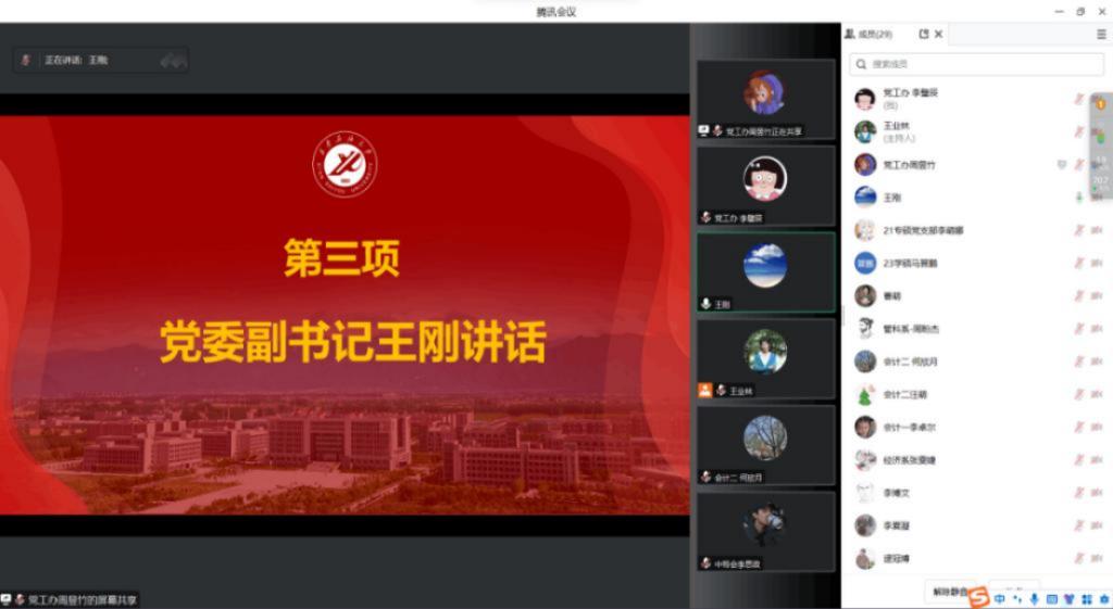 學(xué)院黨委副書記王剛對2023年學(xué)院學(xué)生黨支部黨建工作成果表示肯定,對各學(xué)生黨支部書記的工作表示感謝,對支部傳承和辛勤付出進行鼓勵。他表示,學(xué)生黨支部書記述職評議會是各支部間難得的溝通交流機會,希望各黨支部書記高度重視自查和考核工作,相互交流工作經(jīng)驗,以本次述職評議為契機,努力做到黨建引領(lǐng)把牢方向、統(tǒng)籌協(xié)調(diào)凝聚力量、攜手同行、齊頭并進,深入推進學(xué)院學(xué)生黨建工作高質(zhì)量發(fā)展。