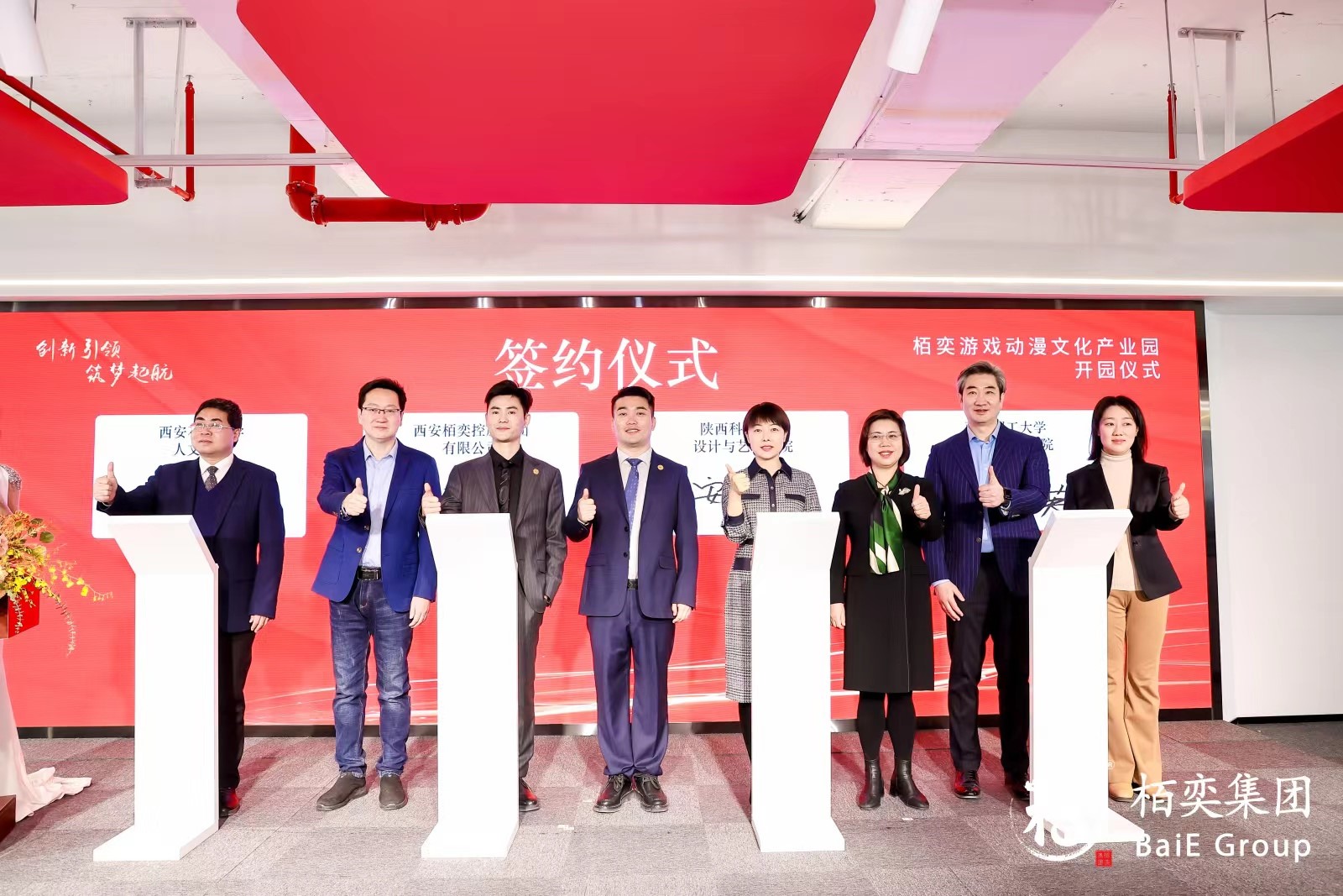 西安浐灞國際港黨群工作部、宣傳文旅局、城管局、投資商務(wù)局,以及各高校、協(xié)會、企業(yè)代表等160余人出席本次開園儀式。我校就業(yè)指導(dǎo)中心副主任樊曉旭、人文學(xué)院黨委書記余小勇、人文學(xué)院黨委副書記盛丹、人文學(xué)院教授肖雪峰等一行出席活動。在校企簽約儀式上,余小勇與栢奕集團(tuán)董事長任占奎簽訂了校企合作協(xié)議,栢奕集團(tuán)副總?cè)味Y煜向肖雪峰頒發(fā)了專家聘書。