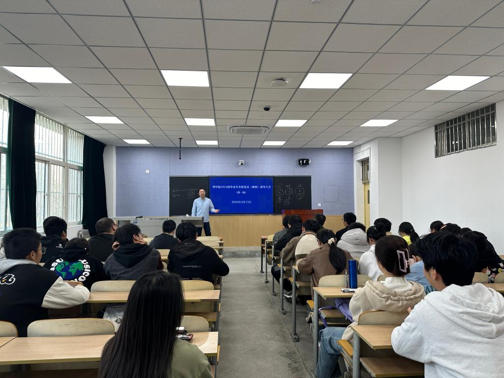 3月14日上午,理學(xué)院在鄠邑校區(qū)博思樓103教室舉辦了2024屆畢業(yè)生考研復(fù)試(調(diào)劑)指導(dǎo)大會(huì)。理學(xué)院黨委副書記馬小剛主講,2024屆輔導(dǎo)員林曄主持,理學(xué)院60余名學(xué)生參會(huì)。