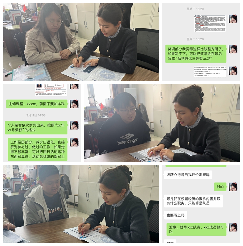 簡歷作為求職過程中體現(xiàn)自身就業(yè)本領重要的一環(huán),畢業(yè)班輔導員定期為畢業(yè)生修改簡歷、提升簡歷質量,并結合自身經驗,對簡歷中模板、格式、語言表達等方面存在的問題一一指出,為在日益緊迫的求職熱潮中助畢業(yè)生一臂之力。