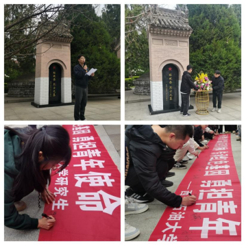 天地英雄氣,千秋尚凜然。全體師生代表來到偉大的愛國主義者、著名的教育家、政治活動(dòng)家杜斌丞烈士墓碑前,在校團(tuán)委李政老師主持下進(jìn)行了祭奠。大家回顧了杜斌丞先生為探索救國救民道路而走過的不平凡革命歷程,以及先生與我校的歷史淵源。同學(xué)們紛紛表示,前進(jìn)道路不可能一帆風(fēng)順,宏偉藍(lán)圖不可能一蹴而就。大家不僅要銘記烈士的遺志,弘揚(yáng)英烈的精神,更要踔厲奮發(fā)、勇毅前行,不斷為強(qiáng)國建設(shè)、民族復(fù)興偉業(yè)添磚加瓦、增光添彩,把革命先烈為之奮斗、為之犧牲的偉大事業(yè)奮力推向前進(jìn)。隨后,全體師生代表在橫幅上鄭重地簽上了自己的名字。