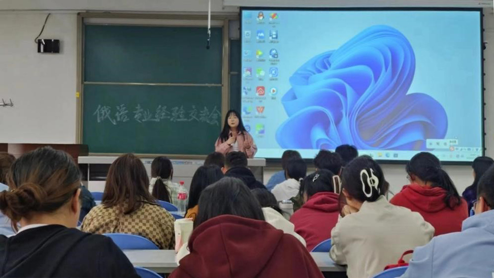 為落實(shí)學(xué)院關(guān)于推進(jìn)畢業(yè)生就業(yè)工作的安排,加強(qiáng)俄語(yǔ)專(zhuān)業(yè)學(xué)生對(duì)升學(xué)和就業(yè)形式的了解,幫助學(xué)生做好學(xué)業(yè)及職業(yè)規(guī)劃。4月2日,俄語(yǔ)專(zhuān)業(yè)在鄠邑校區(qū)A302教室舉辦就業(yè)考研經(jīng)驗(yàn)分享交流會(huì),俄語(yǔ)專(zhuān)業(yè)優(yōu)秀在校生楊奕聰、孫芳茹、張靜葉、薛思琪以及優(yōu)秀畢業(yè)生郭麗瑋應(yīng)邀分享經(jīng)驗(yàn)。會(huì)議由俄語(yǔ)系系主任張艷主持。俄語(yǔ)專(zhuān)業(yè)教師李娜、賈永寧、孫婷、郭靜遠(yuǎn)及近200名本科生參加會(huì)議。