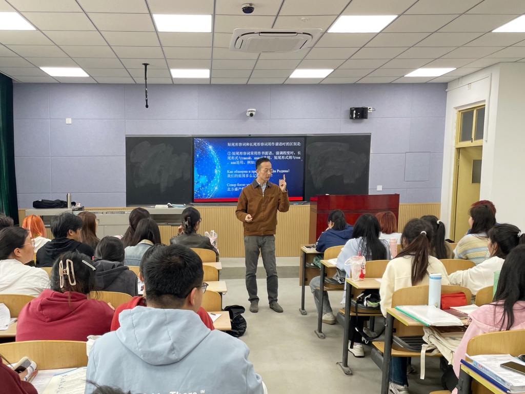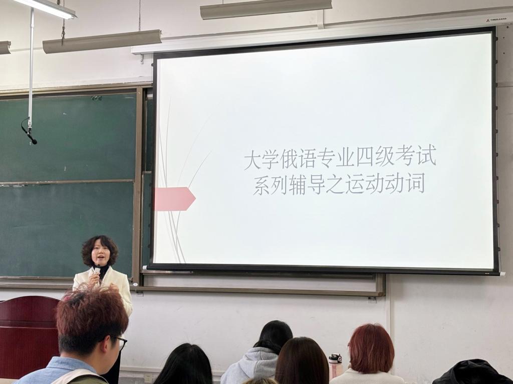 學習引領(lǐng),干在實處。3月以來,俄語系教師黨支部急學生所需,貢獻師者力量。針對本學期的俄語專八、專四考試,組織黨員教師羅蝴蝶、孫婷、李娜、郭靜遠、管義珅為學生開展俄語專業(yè)四級講座7場,主題分別為:俄語前置詞、名詞、運動動詞以及帶前綴的運動動詞、詞類辨析、形容詞等。組織專業(yè)八級、專業(yè)四級模擬考試二場,有效助力俄語專四專八通過率。為提高教育教學和學生學業(yè)質(zhì)量,俄語系堅持為學生們配備7人一組的學業(yè)導師,俄語系全體教工黨員、賈永寧老師、無黨派人士王春牧老師作為學業(yè)導師堅持每周為學生輔導一次,為學生取得良好成績保駕護航。此外,為幫助學生做好職業(yè)規(guī)劃,推進就業(yè)和考研,俄語系教師黨支部還舉辦了“榜樣的力量”經(jīng)驗分享交流會,組織優(yōu)秀在校生、畢業(yè)生給低年級學生分享經(jīng)驗,發(fā)揚專業(yè)傳幫帶的優(yōu)良傳統(tǒng)。