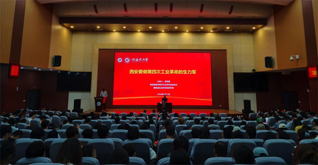 張寶通結(jié)合自身研究及實(shí)踐經(jīng)歷,從世界新質(zhì)生產(chǎn)力的四次飛躍、西安第四次工業(yè)革命的優(yōu)勢(shì)、“一帶一路”助推西安工業(yè)革命三個(gè)方面作了深刻又詳實(shí)的報(bào)告。他指出,當(dāng)前世界已發(fā)生了三次工業(yè)革命,每次工業(yè)革命都是生產(chǎn)力質(zhì)的飛躍,從機(jī)械化到電氣化再到信息化,目前正在經(jīng)歷第四次工業(yè)革命,即由新質(zhì)生產(chǎn)力引領(lǐng)下的智能化時(shí)代。他強(qiáng)調(diào),當(dāng)前西安作為國(guó)家綜合性科學(xué)中心和科技創(chuàng)新中心“雙中心”城市,在科學(xué)教育、高新技術(shù)、裝備制造、電子信息、國(guó)防科技等方面具有獨(dú)特的優(yōu)勢(shì),希望廣大同學(xué)能夠積極努力學(xué)習(xí)專業(yè)知識(shí),不斷提升自身綜合素質(zhì)能力,在未來(lái)積極投身陜西經(jīng)濟(jì)建設(shè),為我省在第四次工業(yè)革命智能化發(fā)展的過(guò)程中發(fā)揮青年人應(yīng)有的作用,進(jìn)一步爭(zhēng)當(dāng)能吃苦、敢擔(dān)當(dāng)、有理想、肯奮斗的新時(shí)代三秦好青年。