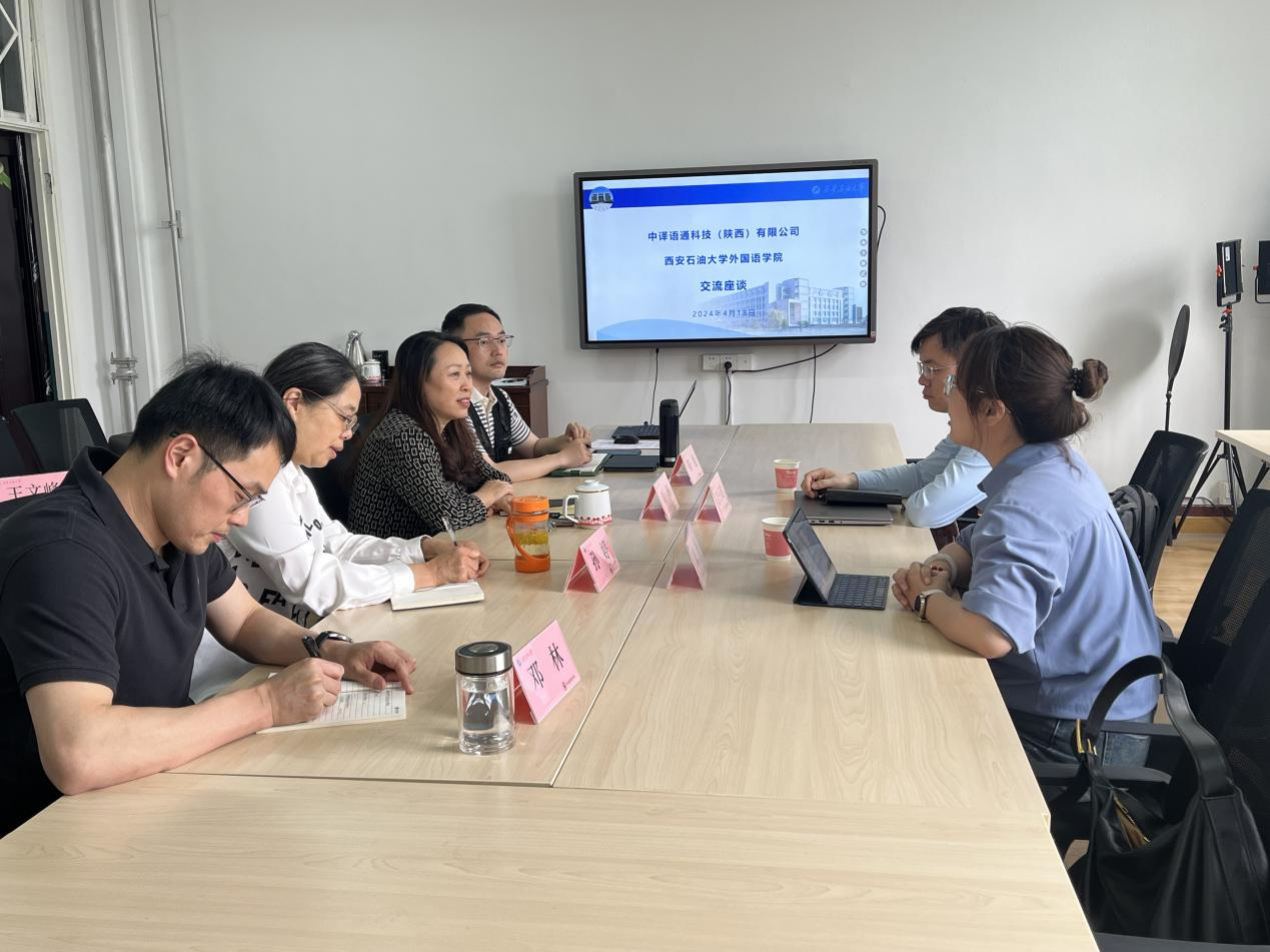 4月18日下午,中譯語(yǔ)通科技(陜西)有限公司語(yǔ)言服務(wù)事業(yè)群總監(jiān)陳棟、數(shù)據(jù)運(yùn)營(yíng)部總監(jiān)吉子瓏一行到訪外國(guó)語(yǔ)學(xué)院,主要圍繞區(qū)域國(guó)別研究進(jìn)行了合作交流研討。會(huì)議由外國(guó)語(yǔ)學(xué)院副院長(zhǎng)劉輝主持,俄語(yǔ)專業(yè)負(fù)責(zé)人孫婷、多語(yǔ)種部副主任陳旭、英語(yǔ)系副主任鄧林參加了交流研討。