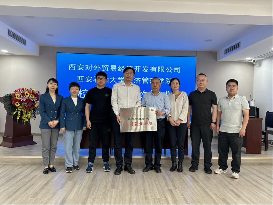 座談會(huì)上,西安對(duì)外貿(mào)易經(jīng)濟(jì)開發(fā)有限公司副總經(jīng)理馬亞軍詳細(xì)介紹了企業(yè)的發(fā)展歷程、合作理念和外貿(mào)業(yè)績等情況,并希望雙方進(jìn)一步加強(qiáng)校企合作,促進(jìn)互促融合發(fā)展。談建勤表示,開展訪企拓崗促就業(yè)活動(dòng)是強(qiáng)化產(chǎn)學(xué)研合作的重要途徑,也是提升人才培養(yǎng)質(zhì)量的突破口,更是促進(jìn)畢業(yè)生高質(zhì)量就業(yè)的有力抓手。他希望通過此次走訪,在人才混合式教學(xué)、理論與實(shí)踐雙向互動(dòng)培養(yǎng)方面持續(xù)發(fā)力,為畢業(yè)生開拓更多的就業(yè)崗位資源,同時(shí)也為在校生挖掘更多的實(shí)習(xí)崗位資源。會(huì)上,雙方進(jìn)行了共建“大學(xué)生實(shí)習(xí)就業(yè)基地”的揭牌儀式和合作簽約儀式。