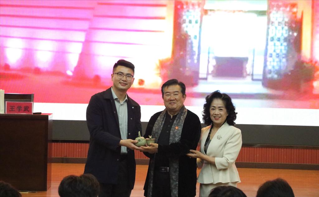 王學(xué)武夫婦向?qū)W校贈(zèng)送柴窯標(biāo)本。