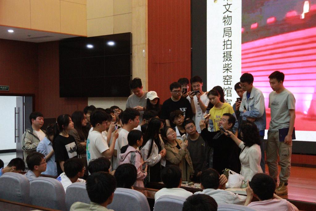 王學(xué)武首先對(duì)中國(guó)唯一以五代后周皇帝“柴榮”姓氏命名的御窯瓷器——柴窯的歷史起源、修復(fù)保護(hù)、文化傳承等方面進(jìn)行了講解。他指出,柴窯作為古代“五大名窯(柴汝官哥定)”之首,距今已有1000多年,柴榮皇帝曾御批柴窯為“雨過(guò)青天云破處,這般顏色做將來(lái)。”,具有“青如天、明如鏡、薄如紙、胎如玉、聲如磐”的特點(diǎn),被譽(yù)為“諸窯之冠”,尊稱為“中國(guó)瓷皇”。其次,他對(duì)自上世紀(jì)90年代開始,本人與夫人寇玉徽放棄原有工作,一起從西安城建中挖掘出現(xiàn)的碎瓷片,開始踏上了搶救保護(hù)研究傳承柴窯的艱辛路程,以及于2009年在文物部門大力支持下,創(chuàng)建集柴窯文物搶救征集、修復(fù)保護(hù)、收藏研究等為一體的西安柴窯文化博物館的初心使命與奮斗歷程進(jìn)行了介紹,勉勵(lì)廣大同學(xué)要堅(jiān)定文化自信,積極學(xué)習(xí)中國(guó)傳統(tǒng)優(yōu)秀文化,勇于擔(dān)當(dāng)社會(huì)責(zé)任,努力成為具有高度文化自信的新時(shí)代好青年。最后,他與現(xiàn)場(chǎng)同學(xué)進(jìn)行了互動(dòng)交流,對(duì)大家提出的問(wèn)題逐一進(jìn)行了解答。