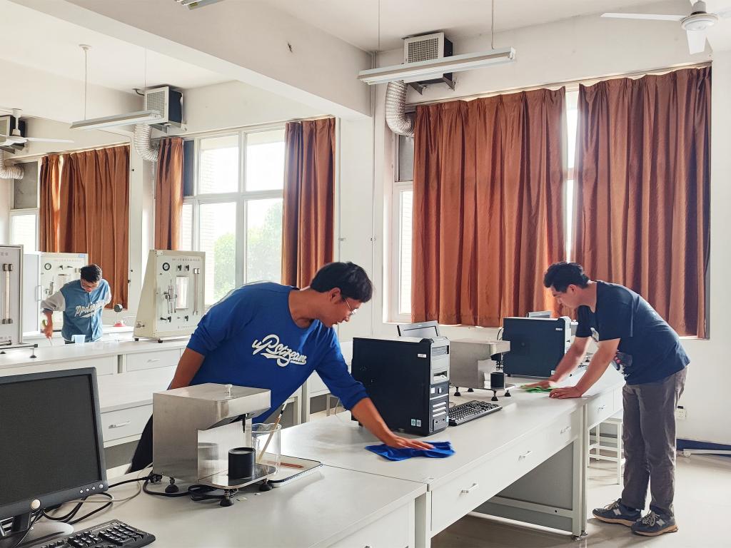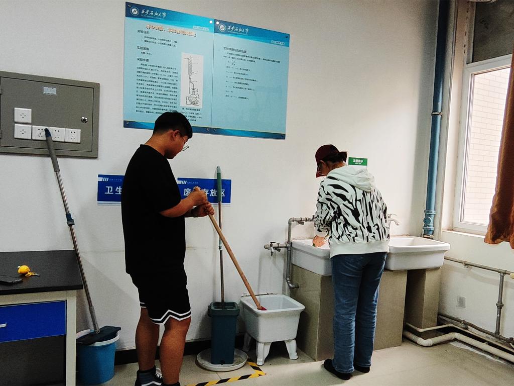 活動開始前,油藏物理實驗室的彭嬌老師為志愿者詳細(xì)介紹學(xué)院部分實驗室的功能以及相關(guān)器材的操作方式和使用目的,將教學(xué)內(nèi)容與實踐操作相結(jié)合,加深學(xué)生對專業(yè)知識的了解,并強調(diào)安全事項。隨后,志愿者按組分工對實驗室進(jìn)行了全面清潔,并逐個檢查衛(wèi)水電安全、化學(xué)安全、設(shè)備安全,改善實驗室衛(wèi)生,共筑安全屏障。最后,學(xué)院資助專干秦馨雨老師進(jìn)行總結(jié)講話,對參與活動的志愿者表示感謝,并希望通過此次活動鼓勵受助學(xué)生勵志成長成才,反哺祖國和社會,傳遞正能量,充分發(fā)揮典型示范和引領(lǐng)作用。參與此次活動的同學(xué)獲得了學(xué)院老師們的一致贊賞。
