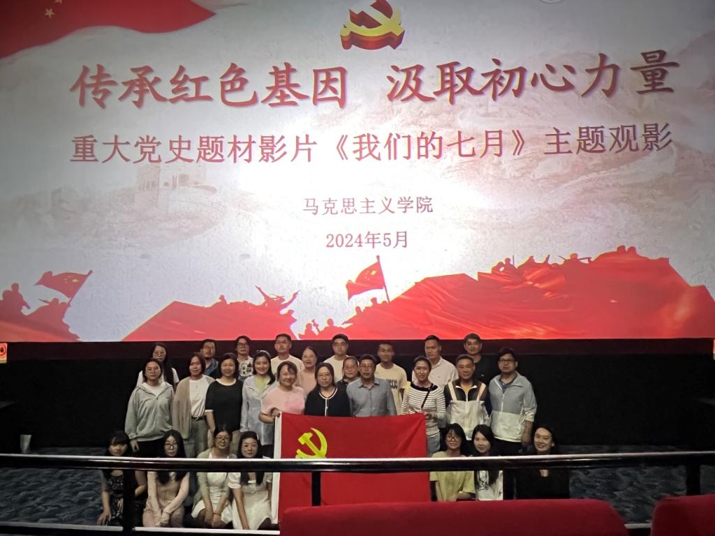 為深入學(xué)習(xí)貫徹習(xí)近平新時代中國特色社會主義思想和黨的二十大精神,認(rèn)真落實習(xí)近平總書記關(guān)于“用黨的歷史教育黨員、教育干部、教育群眾尤其是教育青少年”重要指示精神,5月11日下午,馬克思主義學(xué)院黨總支組織“傳承紅色基因 汲取初心力量”黨史題材紀(jì)錄片《我們的七月》主題觀影活動。學(xué)院黨總支委員、黨支部書記、師生黨員等二十余人參加活動。