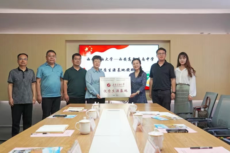 最后,黨院長(zhǎng)就我校近年招生政策、歷年分?jǐn)?shù)、特色專業(yè)等方面進(jìn)行了介紹,并代表學(xué)校與高新唐南中學(xué)簽署了《西安石油大學(xué)優(yōu)秀生源基地建設(shè)協(xié)議》,授予“優(yōu)秀生源基地”牌匾。