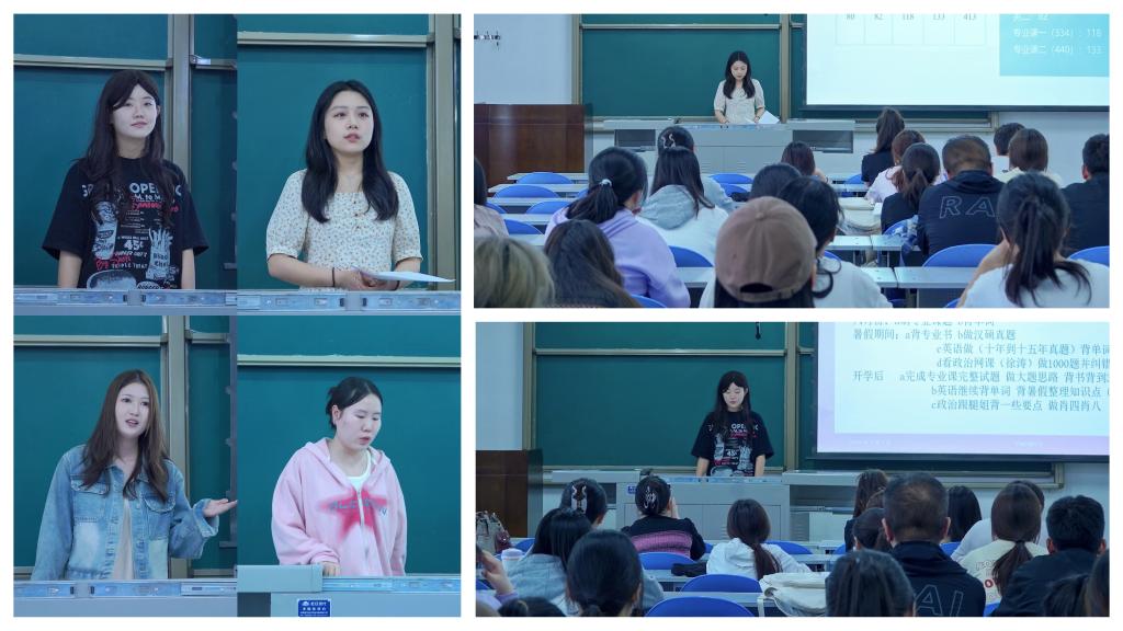 四位分享者從考研準備過程中的時間管理、資料選擇、復習策略、心態(tài)調整以及考試技巧等方面進行了全方位的細致講述,強調了中新聞專業(yè)考研需要特別關注的部分,如緊跟時事熱點、加強寫作訓練、拓展國際視野等。在交流環(huán)節(jié),同學們提出疑問,學姐們結合自身經(jīng)驗,耐心地為在場的同學們進行答疑解惑,并贈送了豐富的考研資料,讓同學們能夠更加從容地備考應戰(zhàn)。參會學生紛紛表示此次分享會幫助自己更好地掌握考試要點,相信能夠提高備考效率。最后,輔導員對所有分享嘉賓和參與學生表示感謝,鼓勵所有學生以優(yōu)秀學長學姐為榜樣,積極備考,將成功經(jīng)驗化為自己的動力,勇敢逐夢。